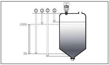 注:使用透鏡雷達(dá)液位計(jì)時(shí),務(wù)必保證最高料位不能進(jìn)入測(cè)量盲區(qū)(圖中1所示區(qū)域)。