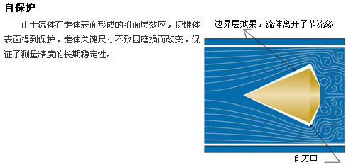 長期穩定性好:錐體的外形設計保證流體在流經錐體時是一種漸變的過程,無突變,β值可保持長期不變,儀表可長期使用不需標定。