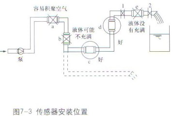 智能電磁流量計(jì)傳感器正確安裝位置 智能電磁流量計(jì)傳感器安裝方向可水平、垂直或傾斜。因?yàn)榱髁坑?jì)在工作時(shí),始終要求測量管內(nèi)充滿被測介質(zhì)。水平安裝時(shí),為了確保這一點(diǎn),必要時(shí)傳感器安裝位置的標(biāo)高可以略低于管道的標(biāo)高,如圖7-1,或使傳感器的下游具有足夠的背壓,如圖7-2。