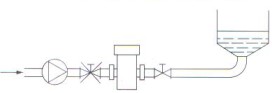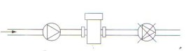 電磁流量計(jì)聚四氟乙烯襯里傳感器的安裝 用聚四氟乙烯(PTFE)管材做的電磁流量計(jì)的傳感器襯里,它與傳感器測量管管壁一般不粘貼,因此,對真空負(fù)壓是敏感的。管道內(nèi)真空會抽癟聚四氟乙烯襯里,使襯里呈波浪型拱起——典型的負(fù)壓破壞形態(tài),這樣破壞了電極的密封,傳感器就不能工作了。因此,PTFE襯里的傳感器不能用于負(fù)壓系統(tǒng),也應(yīng)盡可能避免安裝在可能產(chǎn)生瞬間負(fù)壓的地方。如傳感器不應(yīng)裝在泵的吸入端;閘閥應(yīng)裝在傳感器的后側(cè),如圖所示。