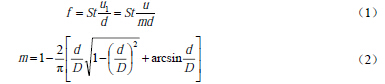 1.引言 渦街流量計(jì)(或稱(chēng)旋渦流量計(jì))是一種基于流體振蕩原理的新型速度式流量?jī)x表。它的輸出信號(hào)是與流量成正比的脈沖頻率信號(hào)或標(biāo)準(zhǔn)電流信號(hào),可遠(yuǎn)距離傳輸,并且輸出信號(hào)僅與流量有關(guān),不受流體的溫度、壓力、成分、粘度和密度的影響。它具有量程比寬,結(jié)構(gòu)簡(jiǎn)單,無(wú)運(yùn)動(dòng)件,檢測(cè)元件不接觸被測(cè)流體,具有測(cè)量精度好、應(yīng)用范圍廣、使用壽命長(zhǎng)等特點(diǎn)。因此,渦街流量計(jì)自20世紀(jì)60年代末誕生以來(lái),發(fā)展異常迅速,許多研究者進(jìn)行了大量的工作,開(kāi)發(fā)出了眾多類(lèi)型的渦街流量計(jì),并大量生產(chǎn)投放市場(chǎng),像這樣在短短幾年時(shí)間內(nèi)就達(dá)到從實(shí)驗(yàn)室樣機(jī)到批量生產(chǎn)過(guò)程的流量計(jì)還是僅有的。 然而,在經(jīng)歷了20世紀(jì)80~90年代的“渦街熱”以后,渦街流量計(jì)的發(fā)展放慢了步伐。由于對(duì)這種新型儀表的生產(chǎn)、設(shè)計(jì)、選型和應(yīng)用方面的經(jīng)驗(yàn)不足,面對(duì)各行各業(yè)千差萬(wàn)別的現(xiàn)場(chǎng)和測(cè)量對(duì)象,有些問(wèn)題逐步暴露出來(lái),如安裝條件和方式對(duì)測(cè)量的影響等。對(duì)于安裝條件(即各種使用條件下所必須的直管段長(zhǎng)度)的要求,不同儀表廠(chǎng)家都會(huì)給出一個(gè)比較合理的建議值。但是,對(duì)于安裝方式(即流量計(jì)水平安裝或垂直安裝)給渦街流量計(jì)造成的影響,一般都沒(méi)有涉及。本文通過(guò)相同條件下的實(shí)驗(yàn)研究,定量地討論和比較了水平、垂直兩種安裝方式對(duì)渦街流量計(jì)測(cè)量的影響。 2.渦街流量計(jì)測(cè)量原理 在流體中垂直于流向插入一根非流線(xiàn)型柱狀物體(即旋渦發(fā)生體),當(dāng)流速大于一定值時(shí),在柱狀物兩側(cè)將產(chǎn)生兩排旋轉(zhuǎn)方向相反、交替出現(xiàn)的非對(duì)稱(chēng)的旋渦列(即卡門(mén)渦街),如圖1所示,通過(guò)檢測(cè)渦街產(chǎn)生的頻率,根據(jù)有關(guān)的關(guān)系式得到流體的流量。 設(shè)旋渦的發(fā)生頻率為f,被測(cè)介質(zhì)來(lái)流的平均速度為u,旋渦發(fā)生體迎面寬度為d,管道內(nèi)徑為D,根據(jù)卡門(mén)渦街原理,有如下關(guān)系式: 式中u1為旋渦發(fā)生體兩側(cè)的平均流速,m/s;St為斯特勞哈爾數(shù),量綱為1;m為旋渦發(fā)生體兩側(cè)弓形面積與管道橫截面面積之比,量綱為1。 管道內(nèi)流體的體積流量qv為: 式中K為渦街流量計(jì)的儀表系數(shù),Hz/(m3/h)。 式(3)就是渦街流量計(jì)測(cè)量的基本關(guān)系式,其中K除與旋渦發(fā)生體、管道的幾何尺寸有關(guān)外,還與斯特勞哈爾數(shù)有關(guān)。斯特勞哈爾數(shù)為無(wú)量綱參數(shù),它與旋渦發(fā)生體形狀及雷諾數(shù)有關(guān),在ReD = 2×104 ~ 7×106范圍內(nèi),St可視為常數(shù),這是儀表正常工作范圍。同時(shí)可以看到,渦街流量計(jì)輸出的脈沖頻率信號(hào)不受流體物性和組分變化的影響,即儀表系數(shù)在一定雷諾數(shù)范圍內(nèi)僅與旋渦發(fā)生體及管道的形狀尺寸等有關(guān)。 3. 渦街流量計(jì)的安裝方式 在工程實(shí)際應(yīng)用中,渦街流量計(jì)通常有如圖2所示的幾種安裝方式[10],其中(a)、(b)、(c)三種方式都屬于水平安裝;(d)則為渦街流量計(jì)的垂直安裝。對(duì)不同的流體應(yīng)采用不同的安裝方式。普通液體、氣體、含水量液體的氣體、低溫氣體和液體、含微量固體顆粒的液體和氣體等可采用(a)、(c)、(d)方式安裝;高溫液體、高溫氣體、蒸汽可采用(b)、(c)、(d)方式安裝;濕飽和蒸汽可采用(a)、(c)、(d)方式安裝;液-氣(含微量氣體)、液-固(含微量固體)和液-液兩項(xiàng)流中,如果氣、固相不超出可測(cè)量范圍,建議首先采用(d)方式安裝。 4. 實(shí)驗(yàn)及結(jié)果討論 4.1 實(shí)驗(yàn)裝置與過(guò)程 實(shí)驗(yàn)裝置結(jié)構(gòu)如圖3所示,水穩(wěn)壓罐為管路提供恒定的水壓,使實(shí)驗(yàn)時(shí)流量穩(wěn)定,水流量的大小由調(diào)節(jié)閥來(lái)調(diào)節(jié),流量范圍為2~20 m3/h。電磁流量計(jì)作為標(biāo)準(zhǔn)流量表給出進(jìn)入實(shí)驗(yàn)段的水的標(biāo)準(zhǔn)流量值,精度為0.5%。渦街流量計(jì)分別按照水平和垂直兩種方式安裝在實(shí)驗(yàn)管路中,它們都具有足夠長(zhǎng)的前、后直管段長(zhǎng)度,并且其它安裝條件都嚴(yán)格按照規(guī)定的要求。渦街流量計(jì)的信號(hào)通過(guò)示波器采集,采樣頻率選用1000 Hz,每組數(shù)據(jù)包含2500點(diǎn)。 4. 2 實(shí)驗(yàn)結(jié)果與分析 分別對(duì)在水平和垂直兩種安裝方式時(shí)測(cè)得的渦街信號(hào)進(jìn)行快速傅里葉變換(FFT),可以得到渦街頻率值,圖4給出了渦街頻率與流量之間的關(guān)系。從圖中可以看出,兩者之間的差別很小。再分別對(duì)測(cè)得的渦街率與流量做零截距最小二乘擬合,得到水平、垂直安裝的渦街流量計(jì)儀表系數(shù)分別為2.5202 Hz/(m3/h)和2.5198 Hz/(m3/h),相對(duì)誤差小于0.02%?梢(jiàn),在安裝方式對(duì)渦街流量計(jì)的測(cè)量影響很小,可以忽略。 為了進(jìn)一步研究渦街流量計(jì)安裝方式的影響,本文還比較了在水平和垂直兩種方式下