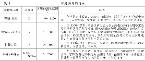 高溫測量中常用熱電偶及其特點如表1所示。在1250℃以下的場合,采用N型熱電偶測溫,其高溫穩定性及使用壽命較K型熱電偶成倍提高,通常與鉑銠熱電偶相當。因此,N型熱電偶的應用范圍在逐步擴大。鎢錸3-鎢錸25熱電偶高溫測量時可測的溫度最高,但在氧化氣體中測量,鎢錸3-鎢錸25極易氧化,因此必須采取抗氧化措施?蓪⑴冀z密封在保護套管中,并填以致密的填充料,填充料中有遇高溫產生還原性氣氛的粉體,外保護管是鉬基硅化鉬管。