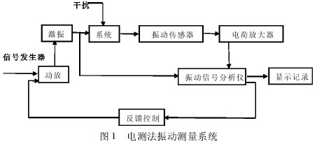 根據(jù)上述內(nèi)容可知,本文振動測量系統(tǒng)研究中采用的是電測法,這是振動測量中常用方法,與光測法和機械法比較而言,該方法具有使用頻率范圍寬,動態(tài)范圍廣,測量靈敏度高等優(yōu)勢,而且電測法能夠適用于不同的測振傳感器,而信號也便于被記錄、處理和傳送。由此,本文中的振動測量系統(tǒng)主要由:振動傳感器、電荷放大器、信號分析儀等構(gòu)成,如圖1所示。