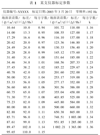 式中,△?為標差;?i為測量頻率值;?0為零頻率。然后通過查表得到每方字數即可求得地面流量值: