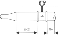 1.渦街流量儀表對安裝點的上下游直管段有一定要求,否則會影響介質(zhì)在管道中的流場,影響儀表的測量精度。儀表的上下游直管段長度要求見圖3