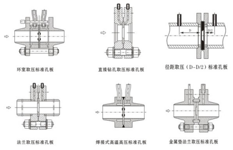 (1)角接鉆孔取壓;(2)角接環室取壓;(3)法蘭取壓;(4)徑距取壓;