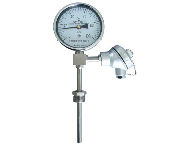 WSSPN系列耐震遠傳雙金屬溫度計既滿足現場測溫需求,也可以滿足遠距離信號傳輸需求(遠傳信號有Pt100信號、K型熱電偶、E型熱電偶、4~20mA電流信號輸出),耐震遠傳雙金屬溫度計可以直接測量各種生產過程中的-80~+500℃范圍內液體、蒸氣和氣體介質以及固體表面的溫度測量。該耐震遠傳雙金屬溫度計從設計原理及結構上具有防水、防腐蝕、耐震動、讀數直觀、信號遠傳、無汞害、堅固耐用等特點,耐震遠傳雙金屬溫度計廣泛應用于石油、化工、機械、船舶、發電、紡織、印染等工業和科研部門。